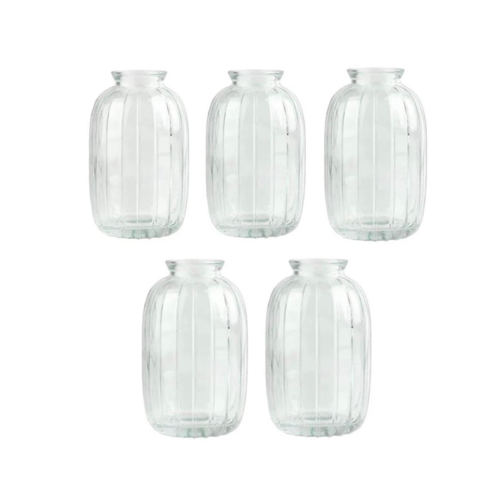 Adicione um toque de elegância e sofisticação à sua casa com nossos Vasos Decorativos Solitário feito com vidro de alta qualidade e resistência. ** Características Principais: Material: Vidro lapidado Altura: 12 cm Diâmetro: 7 cm Quantidade: 5 VASOS Tamanho Ideal: Vaso é perfeito para exibir arranjos florais, ramos verdes ou até mesmo ser usado como peça autônoma. Material Durável: Fabricado em vidro resistente, este vaso é feito para durar, proporcionando anos de beleza e charme à sua decoração. Versatilidade de Uso: Seja na sala de estar, no quarto, na sala de jantar ou até mesmo como peça central em eventos especiais, este vaso é uma escolha versátil para complementar a decoração de qualquer espaço. Presente Ideal: Surpreenda seus entes queridos com um presente que combina beleza e funcionalidade, perfeito para qualquer ocasião especial. ** Cuidados e Manutenção: Para manter a beleza deste vaso por muito tempo, recomendamos limpar com um pano macio e úmido. Evite o uso de produtos químicos abrasivos que possam danificar o vidro. Modelo: Sortido Cor: Transparente